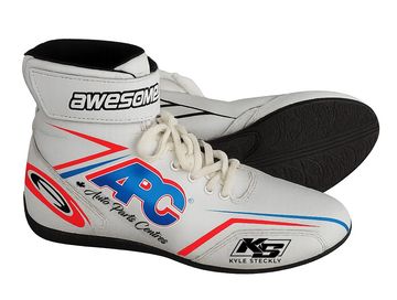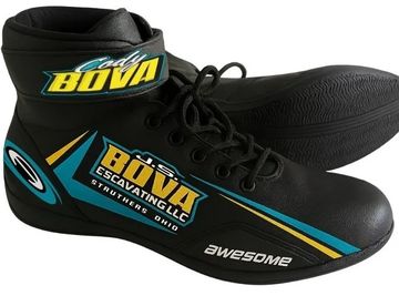 Custom Designed Auto Racing Shoes with Digital Printed Graphic & Sponsor Logos.